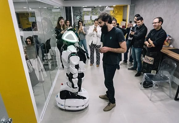 A Umbô fornece os robôs inteligentes da Promobot adaptados para o mercado brasileiro. Eles podem promover produtos em um evento, ser um guia em um museu ou automatizar a entrada em um condomínio empresarial.